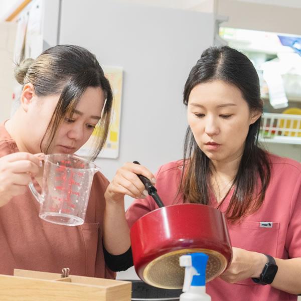 朝からお預かりする土曜日は、みんなで「昼食レク」と称したお昼ごはんづくりをしています。自分で作ったごはんを食べることが食育につながり、ご家族の負担を少しでも減らせれば…と願っています。